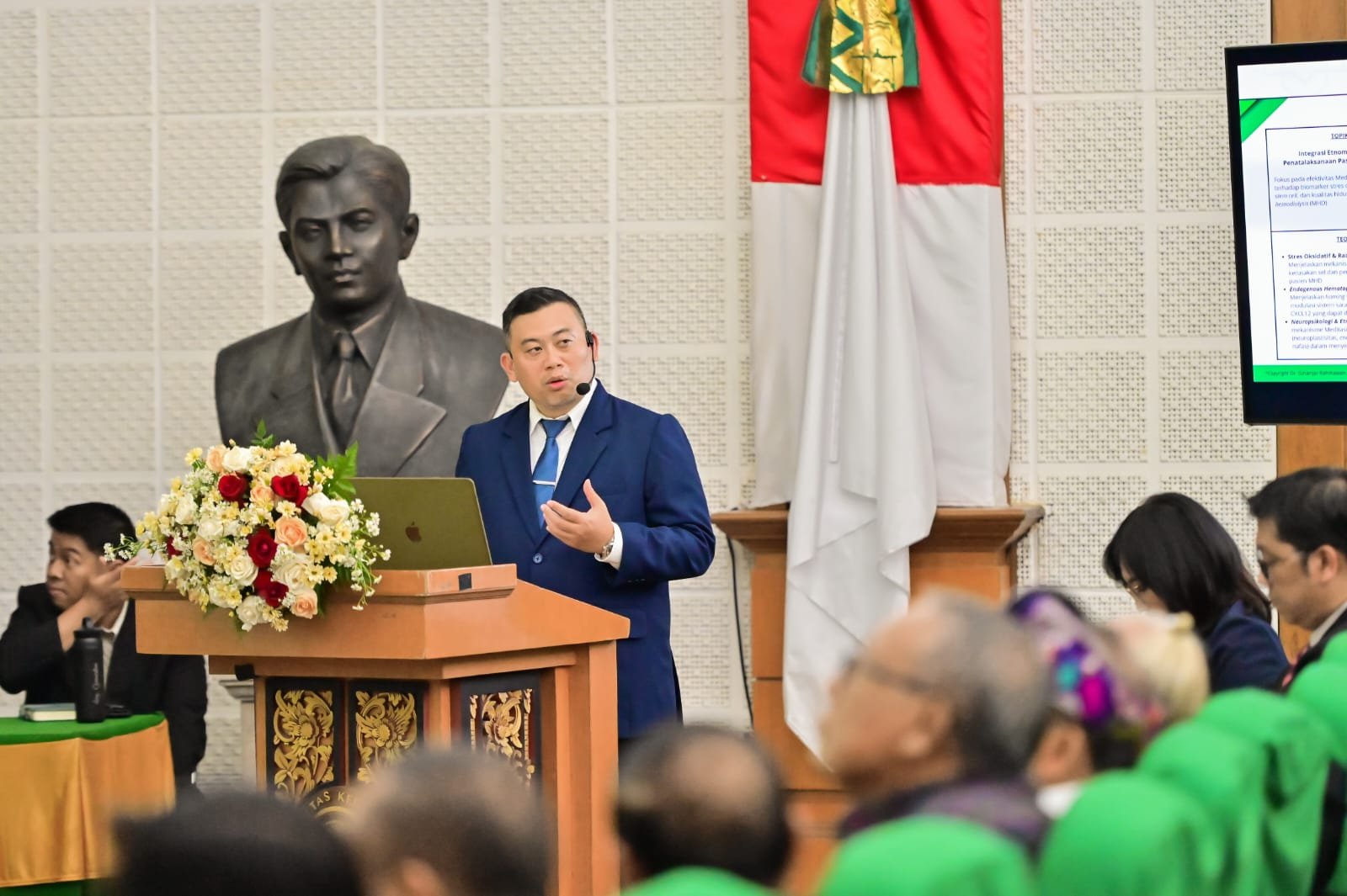 Dalam pemaparannya, dr. I Gusti Ngurah Putra Eka Santosa menjelaskan bahwa meditasi Siddhā Karya berpotensi menjadi pendekatan komplementer dalam penanganan pasien hemodialisa reguler. Hasil penelitiannya menunjukkan adanya penurunan stres oksidatif yang ditandai dengan menurunnya kadar malondialdehyde, serta modulasi CD34 stem cell hematopoetik yang berkontribusi terhadap peningkatan kualitas hidup pasien.